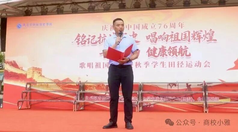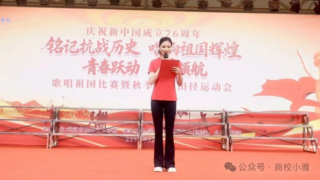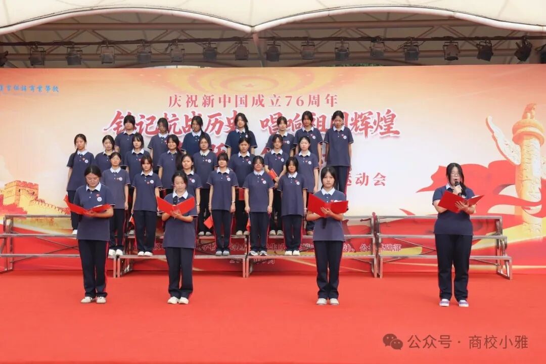 金秋送爽,丹桂飘香,在新中国成立76周年、纪念中国人民抗日战争暨世界反法西斯战争胜利80周年的重要历史节点,武汉市供销商业学校于9月29日上午在学校操场隆重举办“铭记抗战历史 歌唱祖国辉煌”歌唱祖国比赛暨“青春跃动 健康领航”秋季田径运动会。全校师生与家长代表齐聚一堂,在庄严热烈的氛围中,共同开启一场兼具红色教育意义与青春活力的校园盛会。
