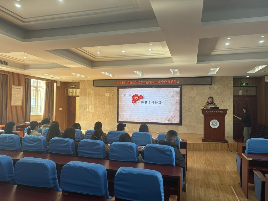 (通讯员 熊莉)为进一步完善家校社协同育人机制,充分发挥家长在学校教育、管理及服务工作中的桥梁作用,2025年11月21日下午,武汉市供销商业学校在学术报告厅举行了“2025级家长委员会成员增补会议”。学生思政发展中心老师张芸主持仪式,学生思政发展中心主任熊莉、学生成长保障中心主任李彤及全体新增补家委会委员出席。