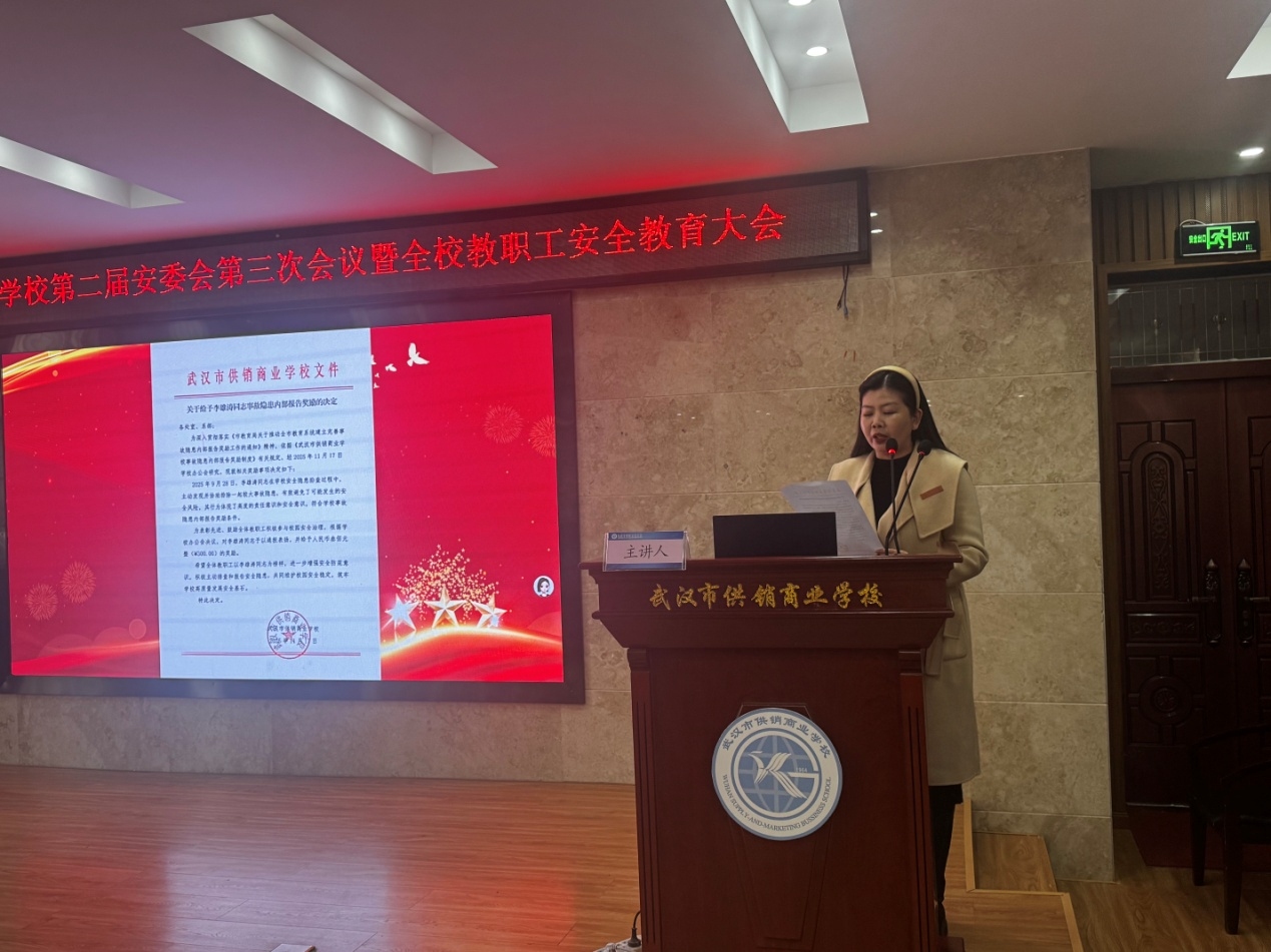 本次会议既是一次安全工作的总结部署会,也是一次全员安全教育的动员会。武汉市供销商业学校将以此次会议为契机,进一步统一思想、凝聚合力,持续完善安全管理长效机制,推动校园安全治理能力不断提升,努力建设更高水平的平安校园,为教育事业发展营造安全、稳定、和谐的良好环境。