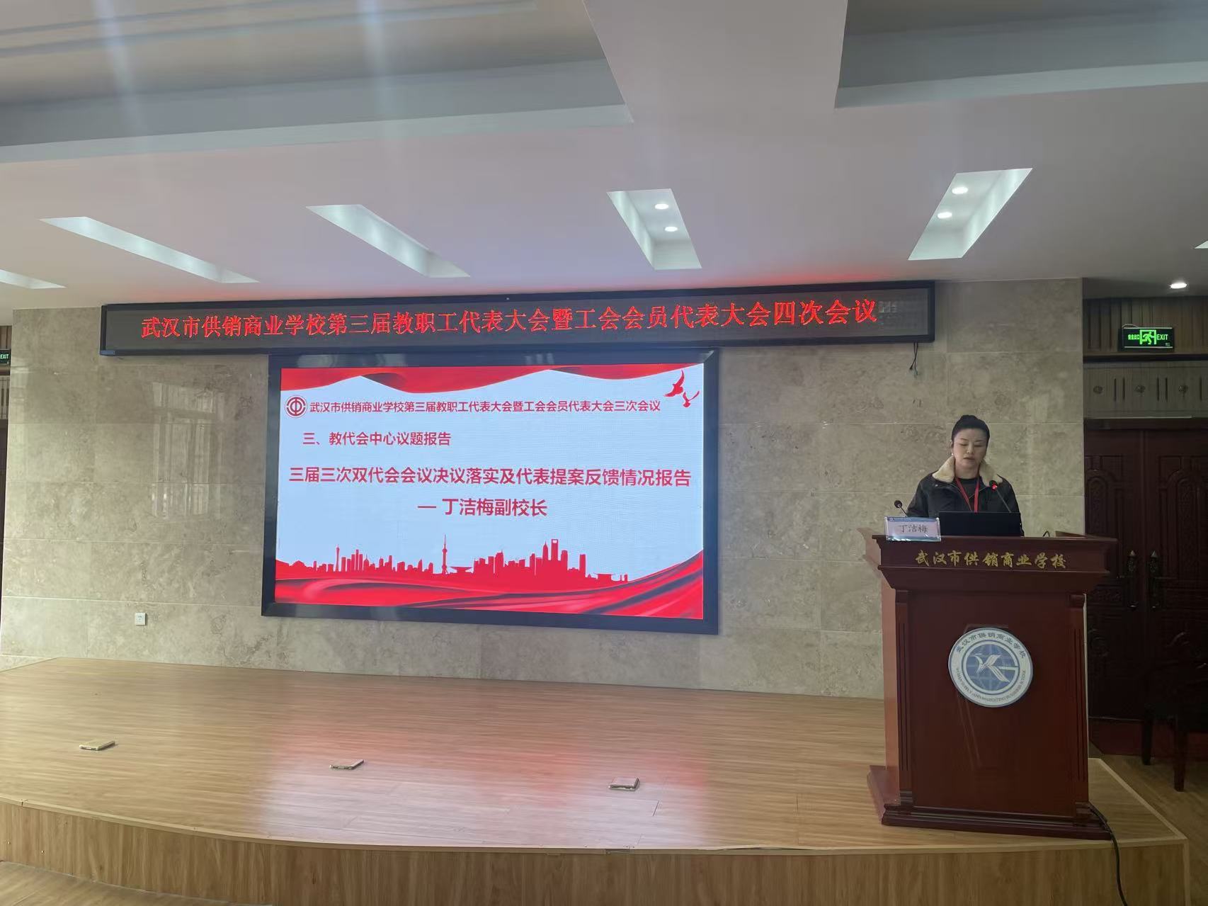 (通讯员 关越)12月18日,市供销商业学校第三届教职工代表大会暨工会会员代表大会四次会议在学术报告厅隆重召开。全体教职工代表与工会会员代表齐聚一堂,共商学校发展大计、共绘高质量育人新蓝图,会议由党群工作部主任徐薇薇主持。