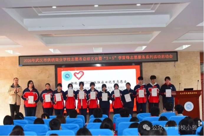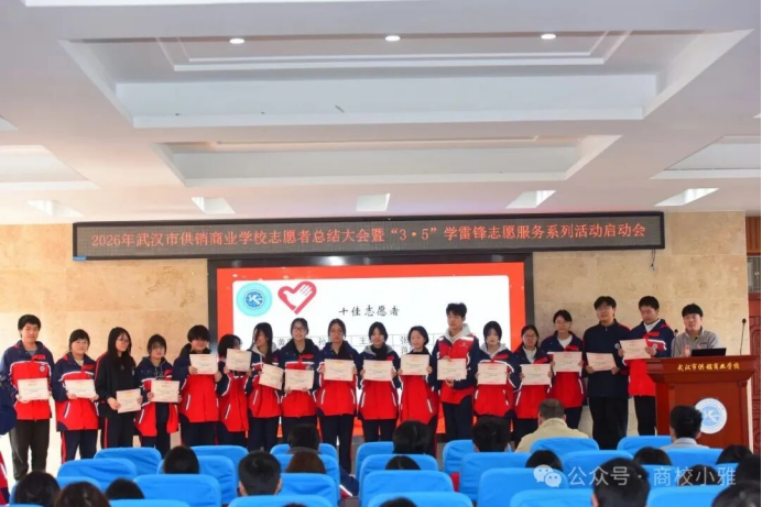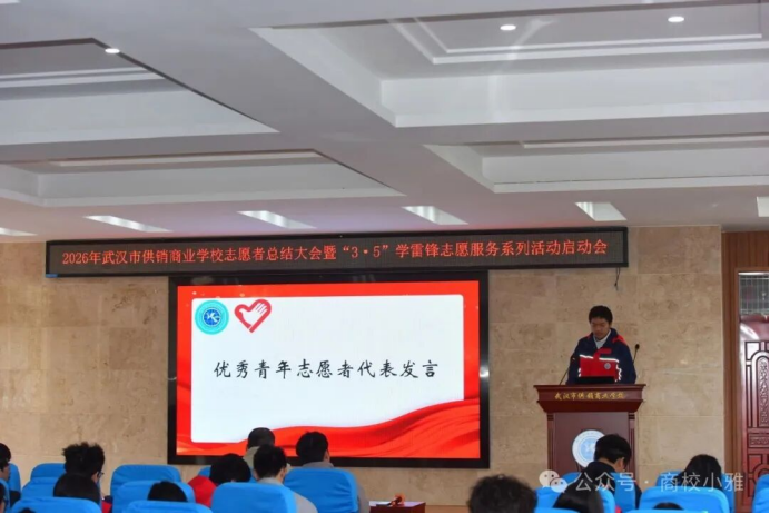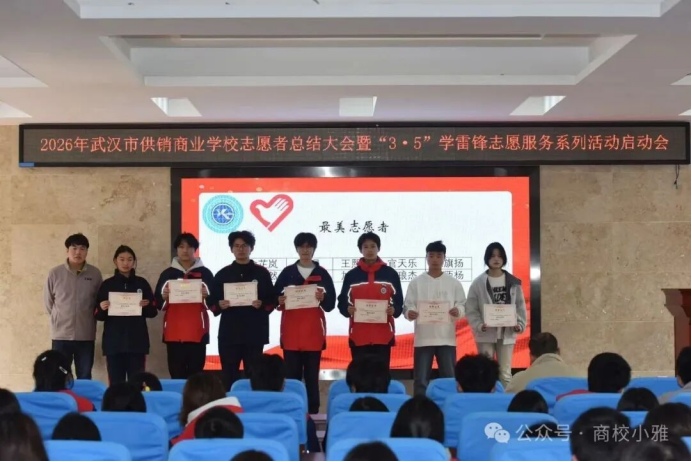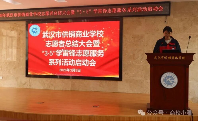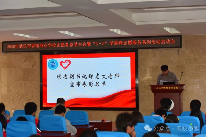 (通讯员 郑志文)春风送暖,雷锋同行。3月5日中午,学术报告厅内暖意融融,市供销商业学校召开2026年志愿者总结大会暨“3·5”学雷锋志愿服务系列活动启动会在学术报告厅隆重启幕。大会全面总结了过去一年学校志愿服务工作,表彰先进、树立榜样,凝聚全校志愿服务力量。学生成长保障中心主任李彤、校团委副书记郑志文与100余名优秀志愿者齐聚一堂,共话奉献,共启新程。
