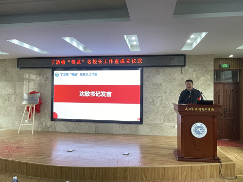 随后,周凌主任作专业指导,提出殷切期望,希望工作室锚定发展方向,深耕职教实践,以专业研究推动区域职教提质增效;湖北工业大学马丹教授以深厚的学术积淀,为工作室发展带来前沿思路,为职业教育变革与创新提供了专业启发;供销商校党委书记沈敏以“每时每刻,精益求精;美美与共,熠熠生辉”为主题发表指导讲话,高度肯定了丁洁梅副校长深耕职教的初心与实绩,阐释了“每益”背后“每践益新、每研益精、每育益人、每融益远”的深层内涵,寄语工作室全体成员以正确政绩观为指引,在职教沃土上深耕细作,同时代表学校承诺将全力做好工作室建设的托举与服务工作,助力建成一个高质量的工作室,打造一个优秀的校内外携手成长的团队。