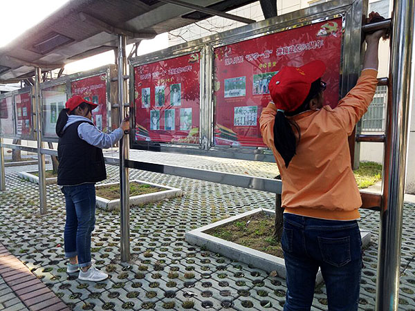 活动当天,校园网青年志愿者小分队迅速行动,分工协作,有的成员用抹布擦掉宣传栏上的灰尘,有的成员来回换水……经过近2个小时的通力协作,校园文化宣传栏变得干净明亮。