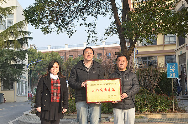 校园网消息(通讯员 熊莉 责任编辑 李雄涛)为贯彻落实《关于进一步开展中等职业学校“文明风采”竞赛活动促进活动育人的意见》(教职成【2015】8号)精神,我校积极参加武汉市第十二届中等职业学校文明风采大赛,荣获“工作突出单位”。2月27日,在学校升国旗仪式上,学校德育办公室副主任校团委副书记熊莉老师、学工处主任王林老师和詹斌老师展示了“文明风采”竞赛活动工作突出单位奖牌。