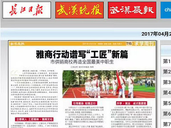 4月中旬的校园里一片朗朗书声,整齐着装的中职学子们正在进行每天第七堂“雅商课堂”课程,这是武汉市教育局直属国家级重点中职学校——武汉市供销商业学校在今年开展的中职生德育工作创新实践。