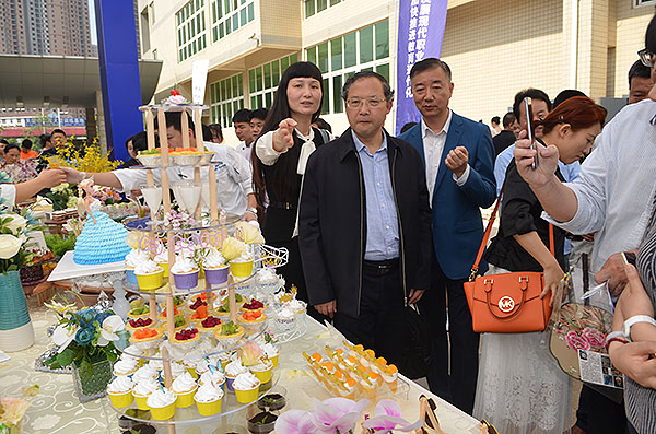 市教育局田文江副局长、职成教处李万平处长参观我校西点制作展台
