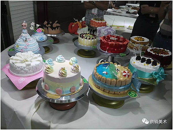 我校选手的作品造型创新大胆、口味丰富、极富艺术创造性,一个个西点作品在选手的精心雕琢下俨然成为了一幅幅艺术作品,获得了现场专家的一致好评!我校选手现场创作的参赛作品欣赏: