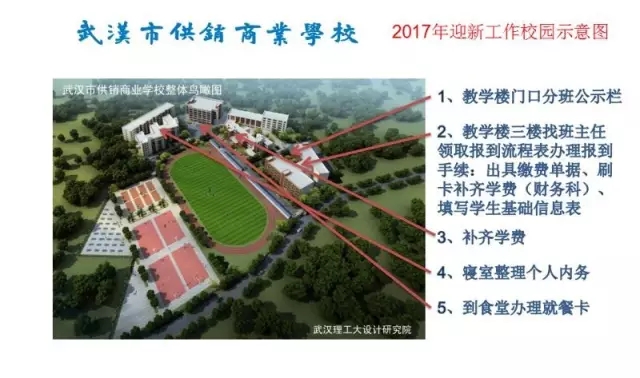 11、领取《新生报到流程表》,学生到寝室整理内务、到食堂一楼办理新就餐卡充值,学生按照上面提示完成,并在下午2点班会课上交。