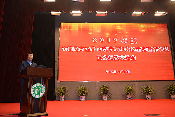 校园网消息(通讯员 责任编辑 李雄涛)2017年12月28日,根据委局统一工作安排,我校沈敏校长、党委王涛书记前往市教育局参加2017年度市委教育工委市教育局机关处室和直属单位工作汇报交流会。