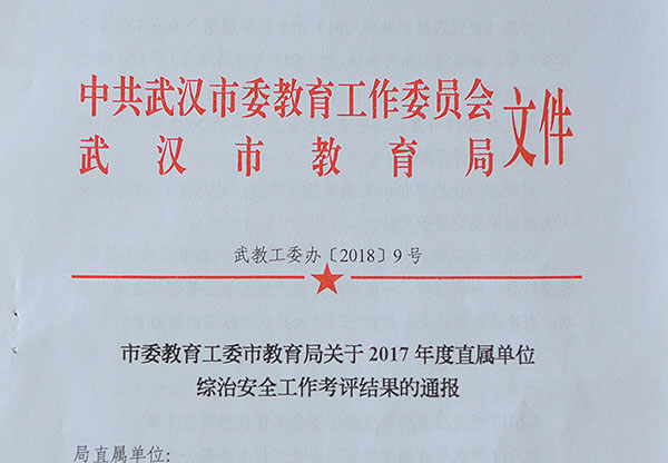 校园网消息(通讯员 范长城 责任编辑 李雄涛)2017年,我校在市委教育工委、市教育局领导下,以夯实基层常规管理为抓手,以强化文化建设为重点,全面推进“平安单位(校园)”、“法治校园”建设,以解决教职工关心的教育热点、难点问题为己任,学校全年无重大刑事案件、无火险、火灾、无意外伤害事故发生,实现了信访维稳“五个”不发生的工作目标,被委局授予“综治安全工作优胜单位”。