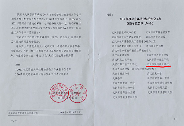 市供销商校荣获市委教育工委市教育局2017年度直属单位 “综治安全工作优胜单位”