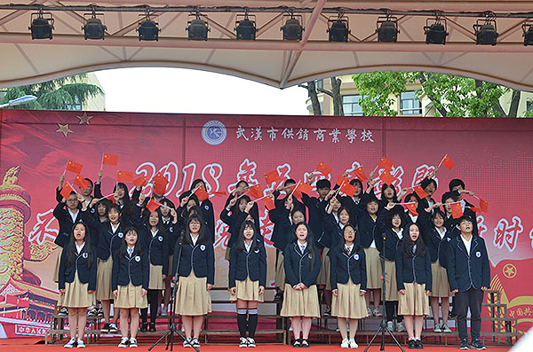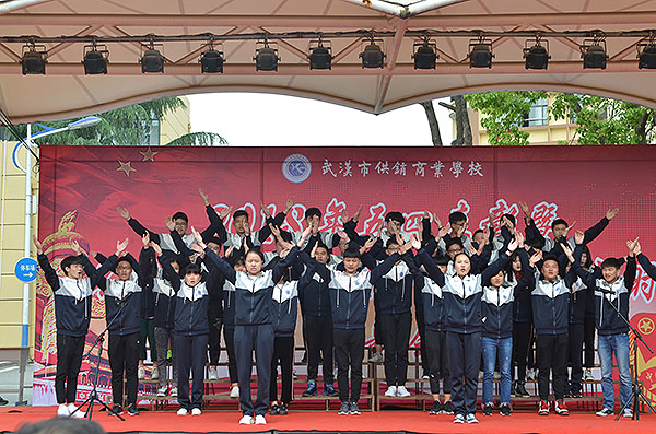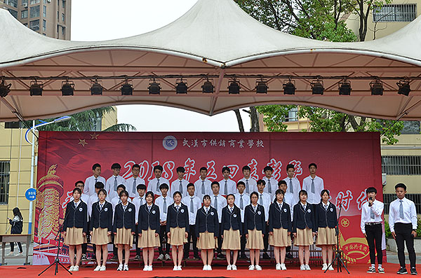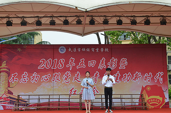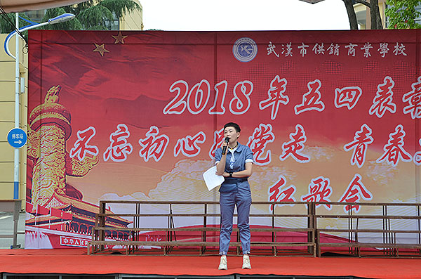 校园网消息(通讯员 熊莉 责任编辑 李雄涛)5月10日,武汉市供销商业学校隆重举行“不忘初心跟党走,青春建功新时代”五四表彰暨红歌会活动。