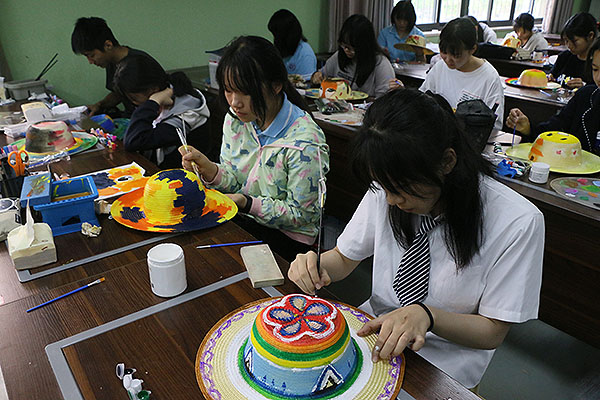 美术专业和形象专业都是致力于美的开发创造,美术专业学生们把对祖国大好河山的热爱挥洒在方寸纸片之上,而在草帽上作画又是展示自己热爱生活的浪漫情怀。形象专业的创意彩妆大赛更是让学生们在诠释美的时刻插上想象的翅膀。