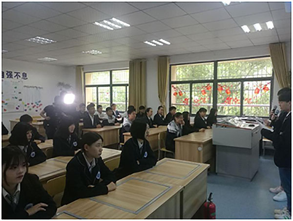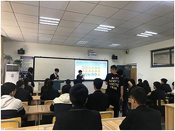 此次班会的内容主要包括消防安全、人身安全、饮食安全和交通安全四个方面的内容,每个模块均通过系列真实案例引入,帮助同学们提高安全防范意识,通过小组讨论、视频启发、知识小卡片小常识的介绍、朗诵表演顺口溜、知识问答等环节帮助同学们学习安全防护常识。在讲到校园消防安全知识的模块时,我们特别邀请了保卫科范长城副科长讲解灭火器的原理与使用方法,在范老师的生动演说下,同学们初步了解到灭火器的种类与使用方法,总结了灭火器使用的四个字,提、拔、握、压及其标准动作,提高了自护自救能力。最后全班同学庄重宣誓,齐诵人生安全小倡议。