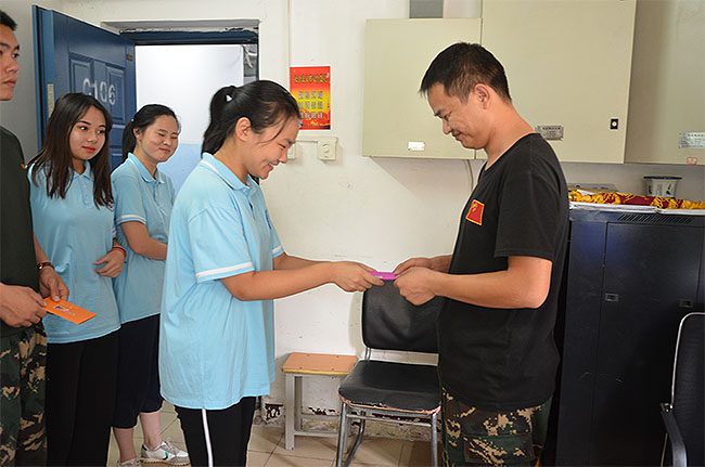 市供销商校18酒店1班为学校后勤工作人员送去教师节祝福