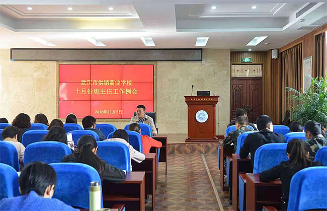 校园网消息(通讯员 李雄涛 责任编辑 姚喆)为进一步提升学校德育工作水平,促进班主任工作质量再上新台阶,2018年11月2日,学校学生工作处召集全体班主任和教官团队在学术报告厅召开10月份班主任工作例会,会议由学生工作处李彤主任主持,李彤主任点评了10月份全校班主任工作,并部署下一阶段班主任工作安排。沈敏校长出席会议与全体班主任、学工处同志们、教务处、各系部主任及住校教官集体座谈面对面交流,号召班主任要做好学校立德树人排头兵。