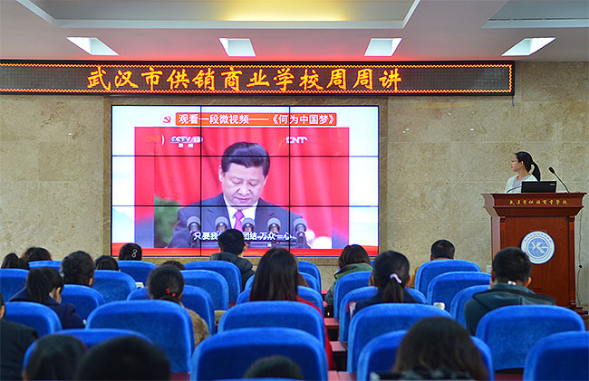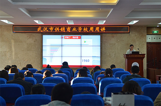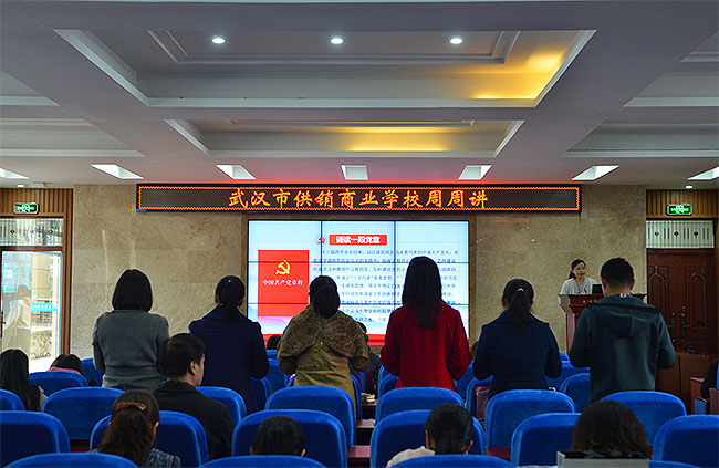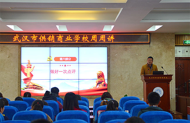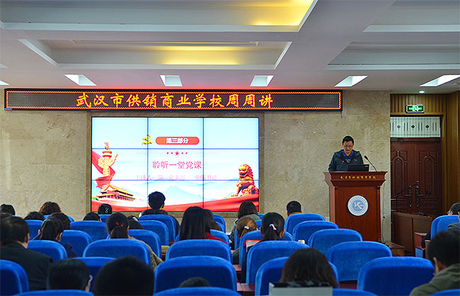 校园网消息(通讯员 罗灿 责任编辑 李雄涛 姚思)根据《市委教育工委关于在全市教育系统开展周周讲活动的通知》(武教工委宣﹝2018﹞2号)要求,2018年11月8日,学校组织全体教职工在学术报告厅开展周周讲活动。本次周周讲活动由第二党支部纪检委员罗灿老师主持,第二党支部蔡伟书记主讲《习近平新时代中国特色社会主义思想三十讲之第三讲—实现中华民族伟大复兴是近代以来中华民族最伟大的梦想》党课,全体校领导班子出席周周讲活动,沈敏校长做了精彩活动点评。