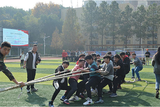 校园网消息(小记者 李蓉 责任编辑 李雄涛 姚思)为丰富校园生活,发扬团队精神,增强班级凝聚力,促进班级之间的交流,武汉市供销商业学校于2018年11月27日举行秋季“雅商杯”拔河比赛。本次比赛由校团委主办,艺体教研室和教官团队联合组织,共有12支班级代表队参加,各班每队由16人组成,分为男子队(16男),女子队(16女)和混合队(8男8女)。