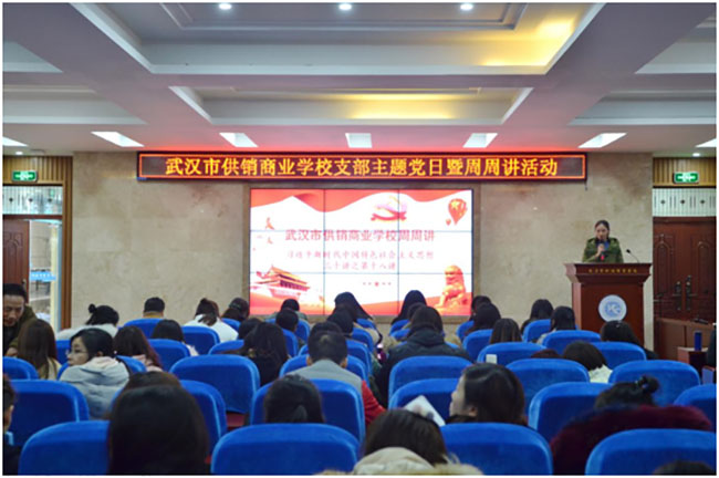 校园网消息(通讯员 罗小玲 责任编辑 李雄涛 姚思)根据《市委教育工委关于在全市教育系统开展周周讲活动的通知》(武教工委宣﹝2018﹞2号)要求,2018年12月6日,学校组织全体教职工在学术报告厅开展周周讲活动。本次周周讲活动由第三党支部组织委员彭敏老师主持,第三党支部刘艳书记主讲《习近平新时代中国特色社会主义思想三十讲之第十八讲——推动社会主义文化繁荣兴盛》党课,全体校领导出席周周讲活动,校党委委员、副校长鄢鸣作了活动点评。