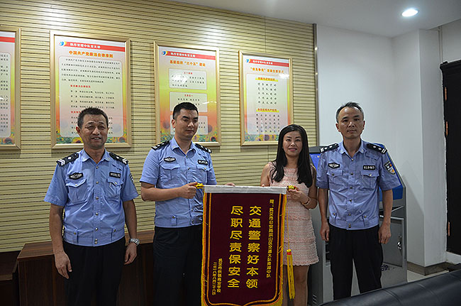 校园网消息(通讯员 范长城 责任编辑 李雄涛 姚思)在第七个“全国交通安全日”(2018年12月2日)前夕,武汉市供销商业学校副校长丁洁梅带领保卫科一行来到武汉市公安局洪山区交通大队,将一面绣有“交通警察好本领,尽职尽责保安全”的锦旗送到了洪山区交通大队南湖中队民警手中,以表达对民警们尽职尽责维护校园周边交通环境的感激之情。