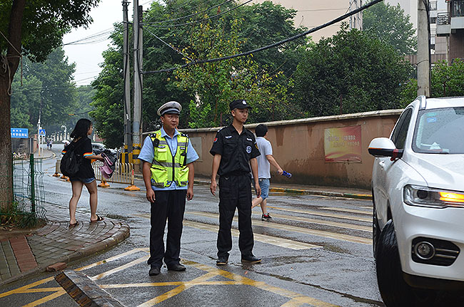 市供销商业学校地理位置特殊、临近南湖大道,车多、人多、交通环境较为复杂,家长们忧虑、学校也担心。保卫科积极与洪山区交通大队联系,在学校门前建立了护学岗,无论严寒酷暑、风吹日晒都始终辛勤地守护在学校周边,为维护好学校周边的交通秩序作出了努力和奉献。