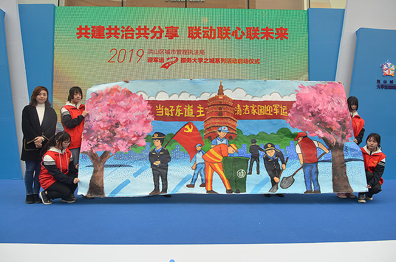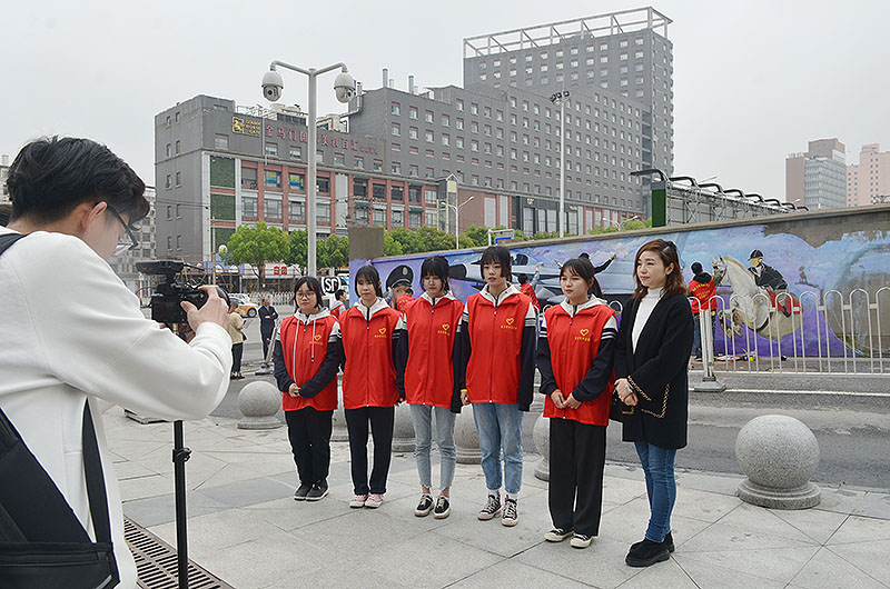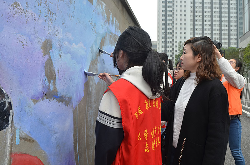 启动仪式后,徐薇薇老师指导我校美术专业学生进行军运主题手绘墙绘制,并和学生们一道接受多家媒体采访。