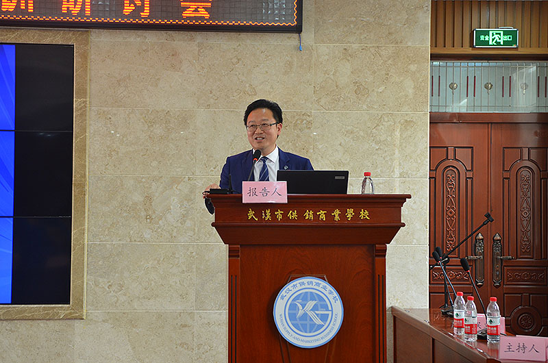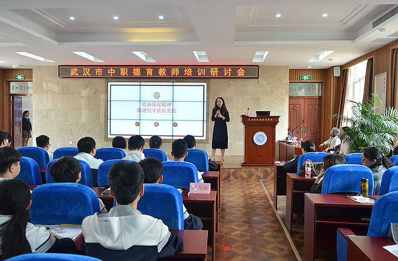 校园网消息(通讯员 夏玲玲 王林)2019年4月19日,湖北省、武汉市中职德育教师培训研讨会在武汉市供销商业学校学术报告厅举行,此次培训研讨会不仅请到“创新杯”获奖选手——武汉市艺术学校董科卉老师、武汉市财贸学校易颖慧老师、武汉市供销商业学校查艳老师分享教学成果,还请到全国思想政治理论课教师座谈会八个发言代表之一的吴又存老师作报告,开展了武汉市供销商业学校2019年4月党委中心组(扩大)学习活动,与会领导与省市德育老师一起学习习近平总书记在全国思想政治理论课教师座谈会重要讲话精神。武汉市供销商业学校全体教职工和来凤县中等职业技术学校等结对共建职校教职工通过斗鱼直播收看了报告会,武汉市教育电视台、楚天都市报等媒体记者对活动进行了采访报道。本次活动内容丰富,启发性强,形式新颖,充分运用融媒体,为省市中职德育工作带来了新的活力。