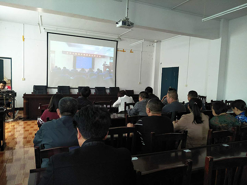 来凤县中等职业技术学校教职工在来凤分会场收看吴又存老师报告会。