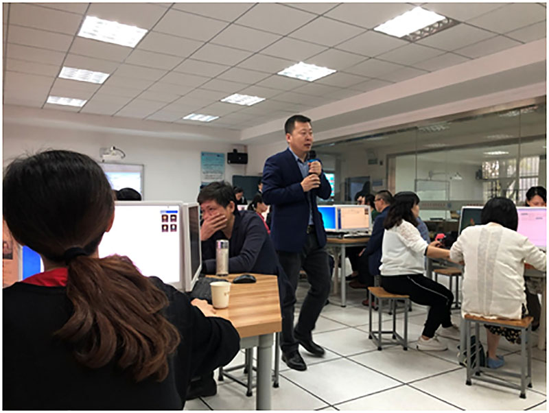 上午九时,来自畅捷通公司的刘金福老师为大家做了“试题导入模板操作培训”。刘老师课前精心准备了培训资料,培训讲解逻辑清晰,层次分明,教学效果良好。在座的学员们也表现出极大的学习热情,遇到不懂之处便会举手提问,刘老师也一一悉心指导。