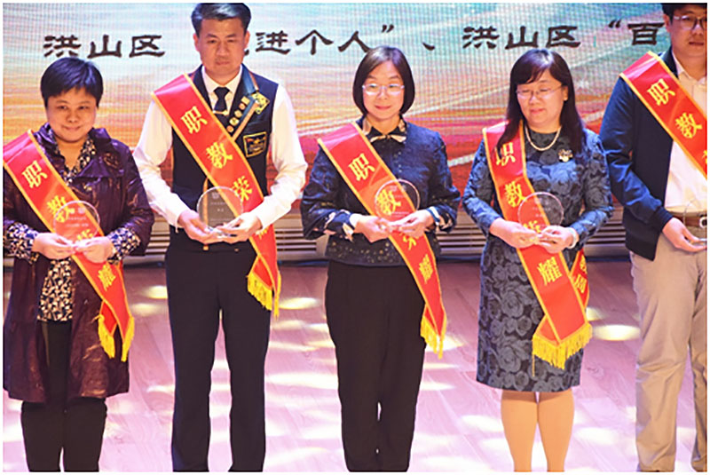 随后进行了职教荣誉的颁奖,我校张星老师作为湖北省职业教育技能名师、会计电算化张星工作室主持人参加职教周开幕式并上台领奖。张星老师先后荣获武汉市三八红旗手、中华全国供销合作总社优秀班主任、武汉市优秀德育教师、武汉市供销社系统优秀共产党员、武汉市教育工委“双创双满意”优秀个人等荣誉称号,连续10年获评省、市会计技能大赛优秀指导老师。从教29年来,一直工作在教育教学一线, 坚守教育岗位29年,坚守“让每一朵花儿都绽放” 的教育理念。本次“职教荣耀”十佳教师荣誉就是她职教三十载的最佳诠释。此次她与胡娟娟、张盼老师带领20名学生参加了会计市赛,相信也一定能取得好的成绩。