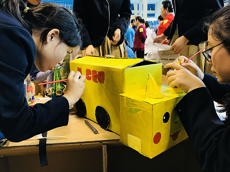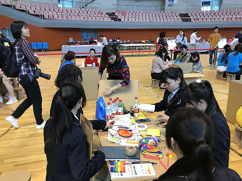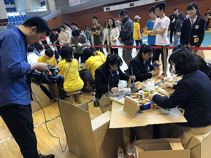 最终,由我校信息服务部段雅婷、徐薇薇两位老师指导的17美术、18美术两支代表队围绕“废有所用,创意点亮生活”的主题发挥想象力,集思广益利用各种废弃物,分别在45分钟内制成一件作品。作品分别为:《创意生活》、《童趣》,我校学生独具创意的作品获得了多家媒体的关注和争相报道,现场气氛十分热烈。