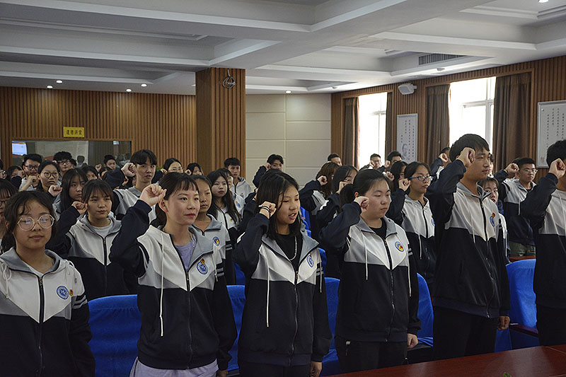 校园网消息(小记者湛欣然 指导老师施四维)2019年5月29日下午,在团委的精心筹划下,校学术报告厅内举行了新团员入团宣誓仪式,我校教师代表、各班团支部书记和团员代表参加了入团宣誓仪式。