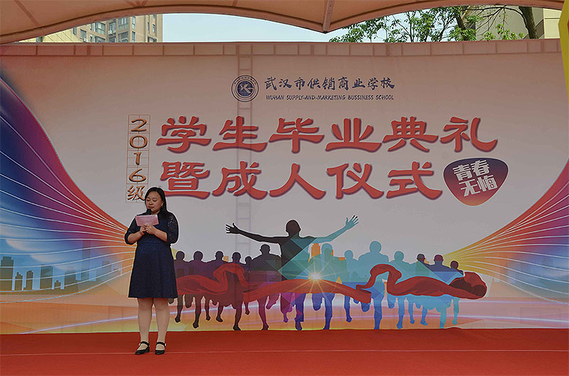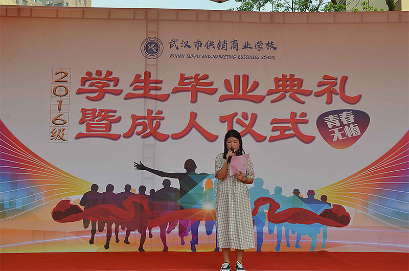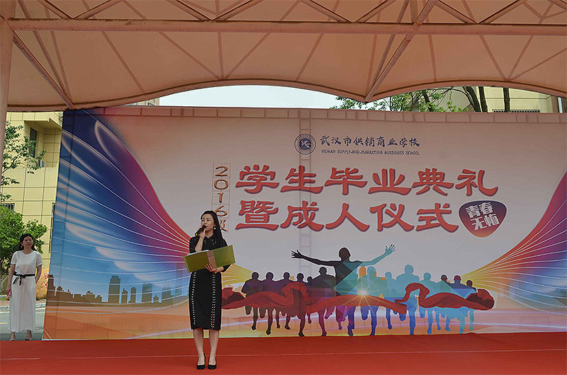 (通讯员:熊莉)栀子花开,又是一年毕业季,武汉市供销商业学校,生机盎然,硕果飘香。5月31日上午,学校隆重举行“青春无悔 我们都是追梦人”——2016级学生毕业典礼暨成人仪式。毕业典礼由学校学工处副主任熊莉老师主持,丁洁梅副校长等校领导和毕业班全体师生及家长齐聚学校运动场,共同见证学生们中职生涯的圆满落幕。