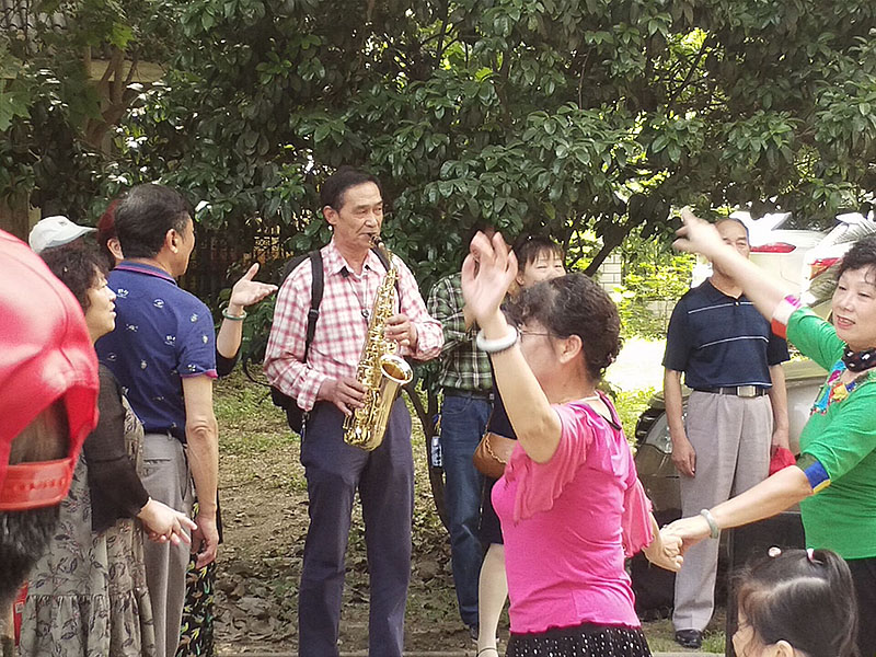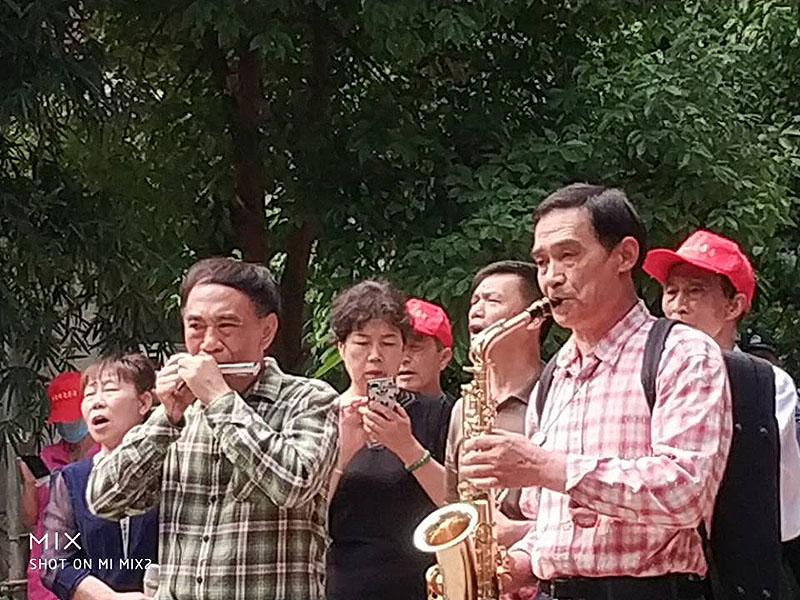 劳动结束后,我校退休党员辛良宇同志指导的社区老年艺术团在劳动现场载歌载舞。我校在职教职工党员和退休党员完成社区双报到率100%,同志们利用业余时间发挥个人特长,积极参与社区各种活动,在社区免费给退休人员讲授书法、美食、信息技术、音乐、体育运动保健等知识,在古画社区承担了多项服务岗位的辛老师谦虚地说:“能够有机会发挥余热,为社区作贡献,是一件开心的事,也是我作为一位共产党员的初心和使命。”