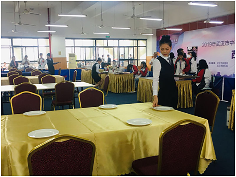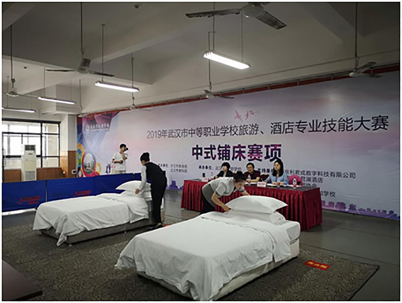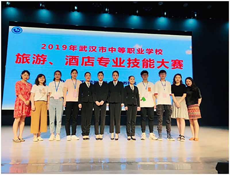 校园网消息(通讯员周甜甜)端庄得体的仪表,礼貌从容的谈吐,熟练的酒店专业实操技能……2019年5月29日我校信息服务部徐薇薇主任、张薇、孙茜雯、周甜甜老师带领酒店集训队同学与武汉市12所中职学校的200多名学生在武汉市中等职业学校酒店服务与管理专业技能大赛赛场上一决高下。