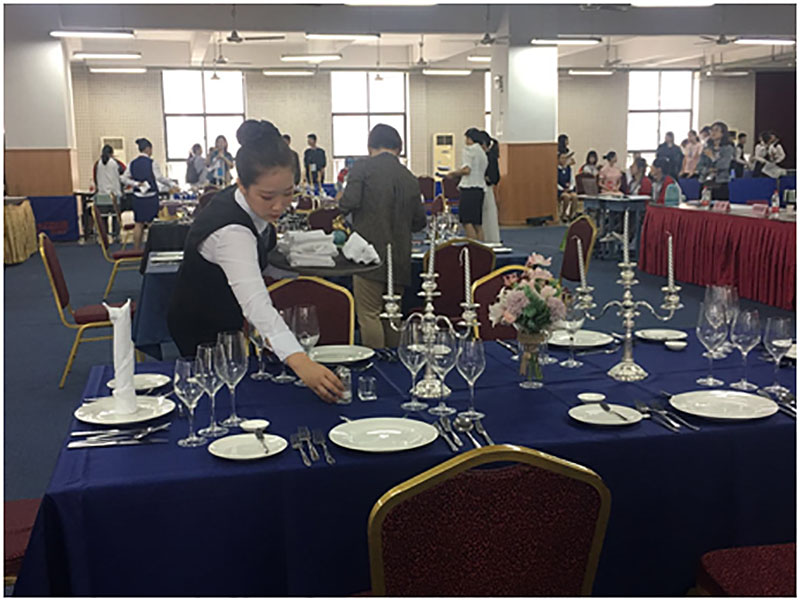 这次比赛涉及中餐摆台、中式铺床、西餐摆台3个项目,每个项目都需要进行理论测试、英语口语测试和现场技能操作比赛。