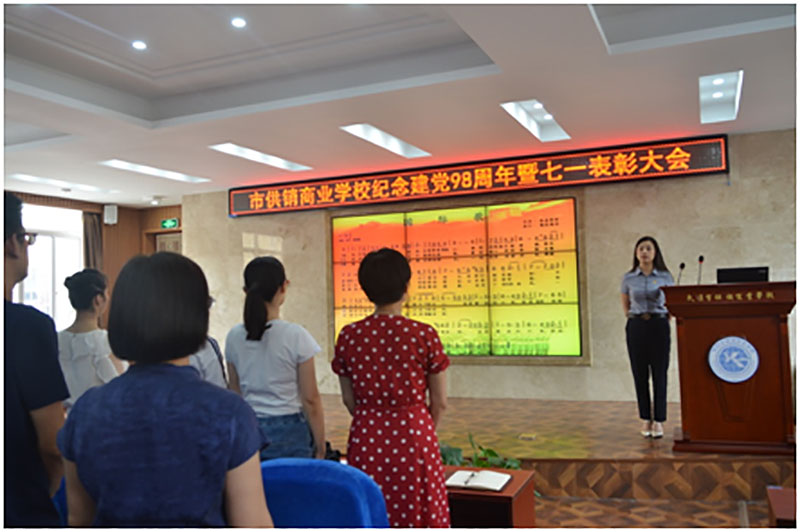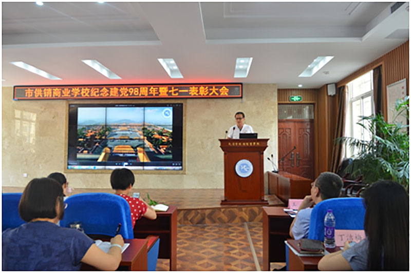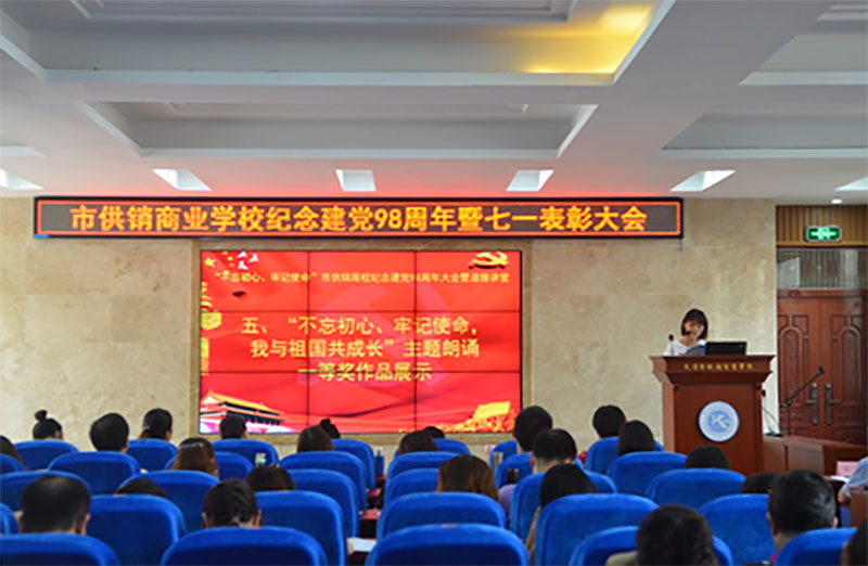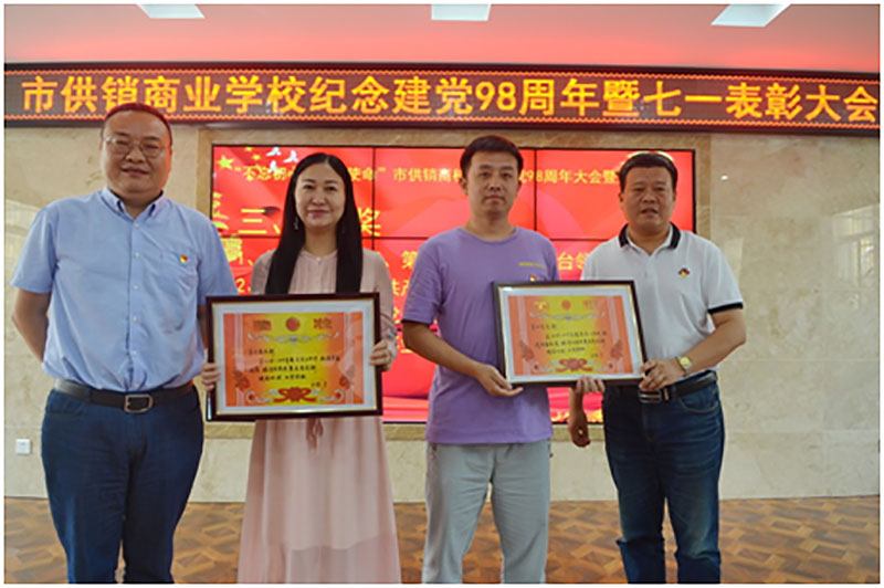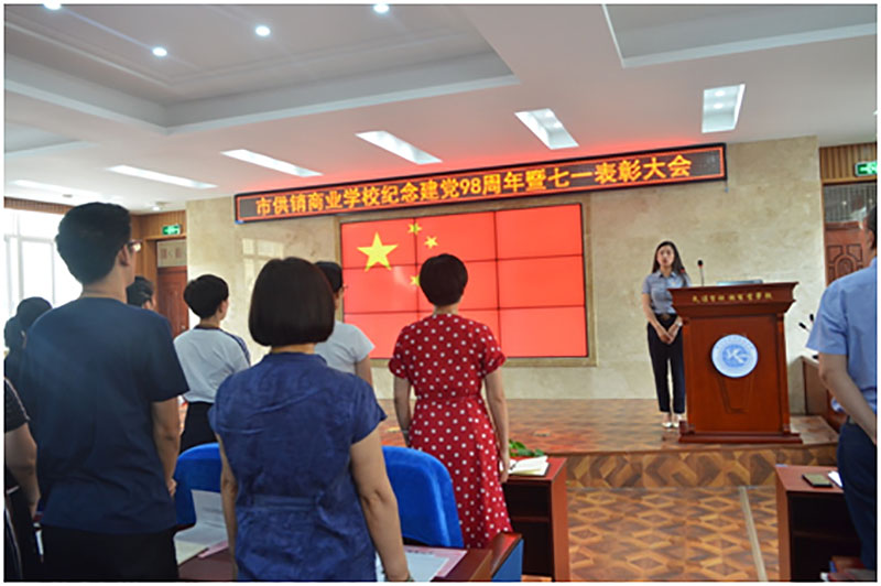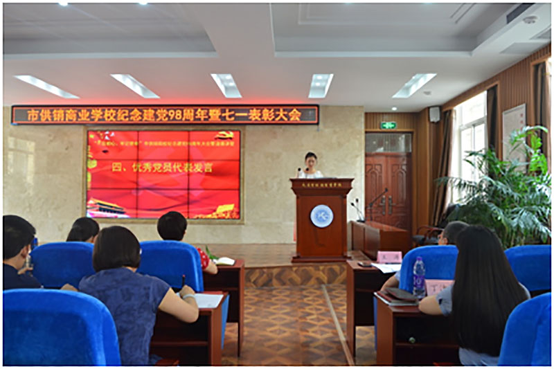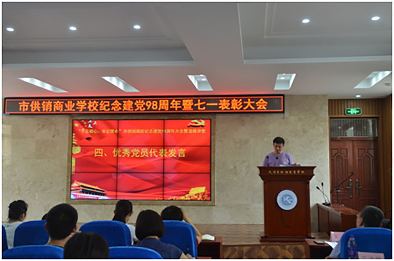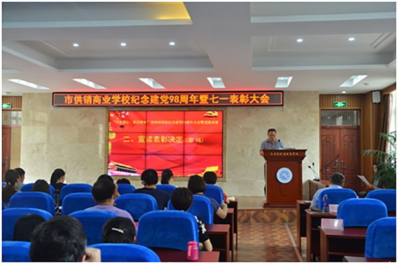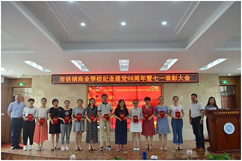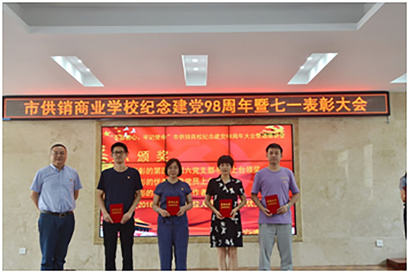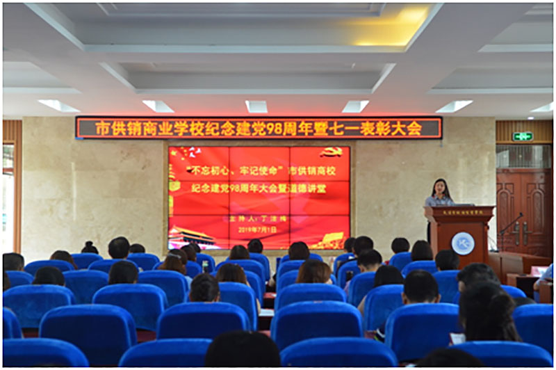 校园网消息(通讯员 施四维)在中国共产党成立98周年和迎接新中国成立70周年之际,2019年7月1日,市供销商业学校举行纪念建党98周年暨“七一”表彰大会。全校教职工同志参加本次大会,会议由党委委员、副校长丁洁梅同志主持,大会通过表彰先进,充分发挥党员的带头突击作用、标杆引领作用、榜样示范作用和先进看齐作用,激发全体教职工更加奋发有为地朝着新时代教育发展的宏伟目标砥砺前行,为推进学校教育事业高质量发展作出积极贡献。