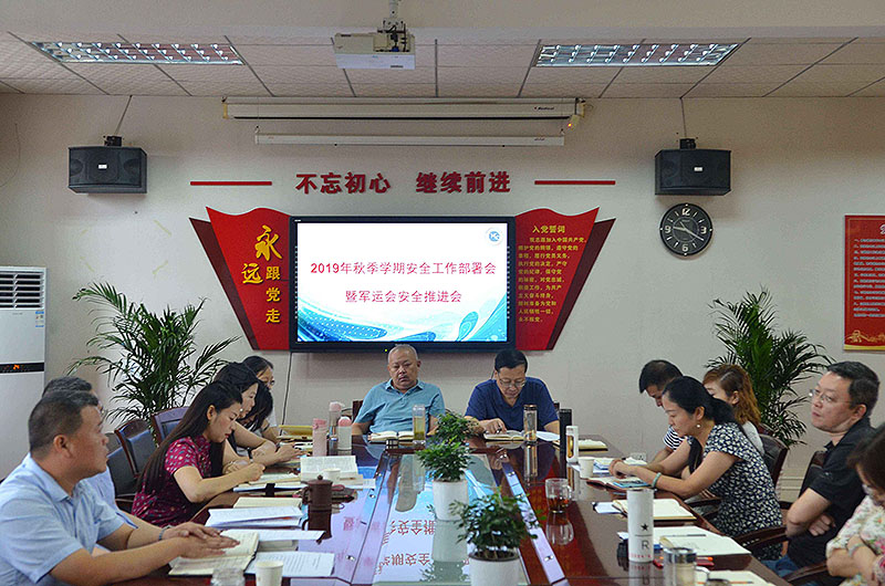校园网消息(通讯员范长城)2019年8月28日上午,武汉市供销商业学校在二楼会议室召开2019年秋季学期安全工作部署会暨军运会期间校园安全工作推进会。全体校领导、中层干部参加此次会议,会议由沈敏校长主持。