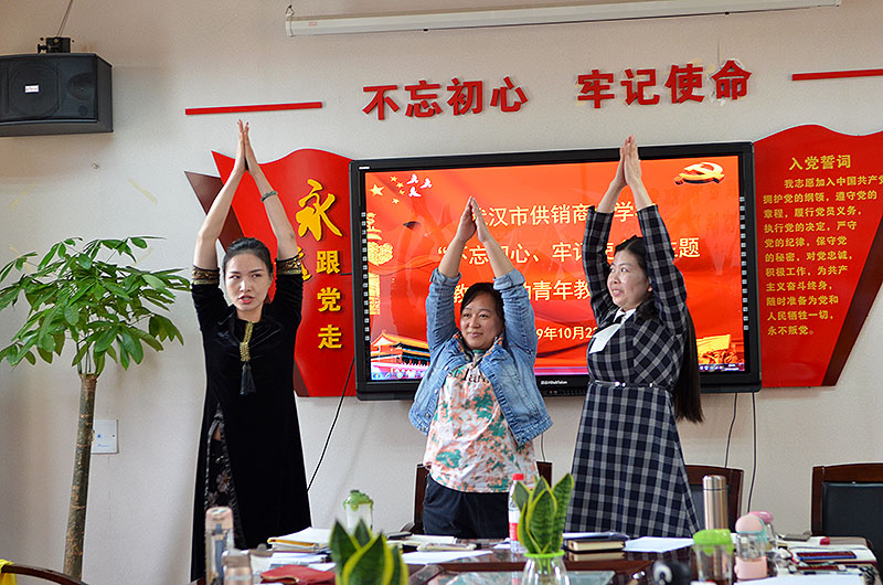 会议第三项为青年教师代表发言。老师们分别就“雅商课堂”、“以德育人”、“如何上好一堂课”、“学生、教师心理健康”、“个人职业生涯规划”、“激励评价”、“家校沟通”、“走进00后”、“ 进城务工子女教育存在的问题和对策”、“如何消除职业倦怠、提升工作归属感和幸福感”、“如何修炼内功、调整心态,争做新时代的好老师”、“多途径提升教师专业技能”、“不忘初心,勇担使命”等方面发表了个人意见,为个人、青年教师群体、学校的发展提出了具体的建议和措施。教师是太阳底下最光辉的职业,“十年树木,百年树人”,踏上三尺讲台,就意味着踏上了艰巨而漫长的育人之旅,教师们情真意切的发言无不体现对教育事业的热爱,谈到动情处有老师哽咽了。面对如何调适压力、保持健康、快乐工作的问题,公共基础系部彭敏老师,利用专业优势,带领参会教师即兴配乐一起进行放松练习,并对教师们如何通过运动缓解疲惫、压力等给出了意见,彭老师即兴的活动组织、激情洋溢的发言将讨论推向了高潮。