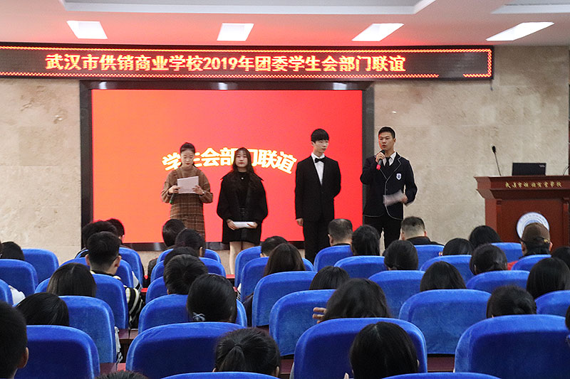 部门联谊在同学们热情的欢呼声中拉开了序幕,映入我们眼帘的是此次联谊的第一个节目,由学生会各个部门的成员带来的小品——《校园文明建设》,这个小品向大家传递了一些珍贵的信息,呼吁我们在平时的工作中要尽职尽责,遇见了麻烦要戎骄戎躁,处理事情的时候要不慌不忙,讲文明,懂礼貌,做好供销文明好青年。各个部门都向大家展现出了自己部门的特色,有歌有舞,有唱有跳,有笑也有闹。精彩的上半场就这样结束了,我们进行了中场休息,开展了激烈的中场游戏,中场游戏时活动更是进入了火热化的状态,大家都在进行激烈的竞争,最终经过角逐产生了前三名。