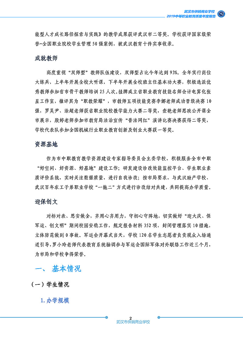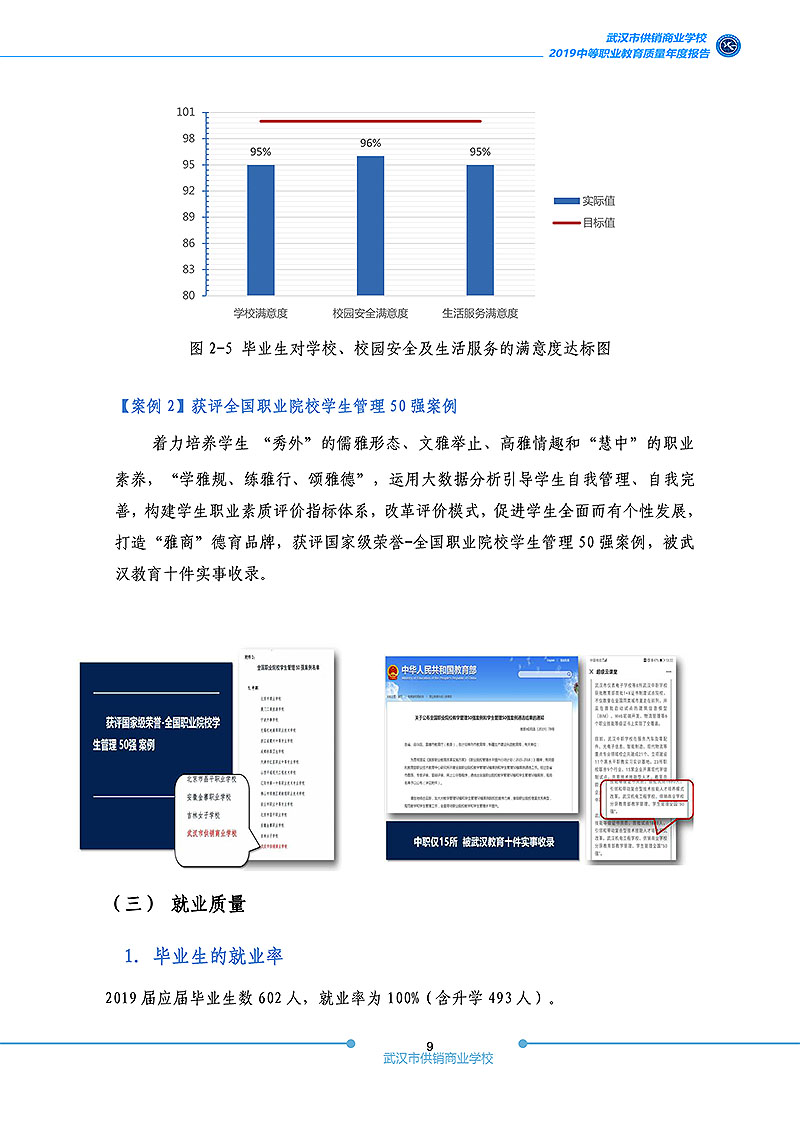 湖北省中等职业教育示范性学校 全国职业院校学生管理50强 武汉市校风标杆校 武汉市群众满意学校 武汉市艺术教育先进单位