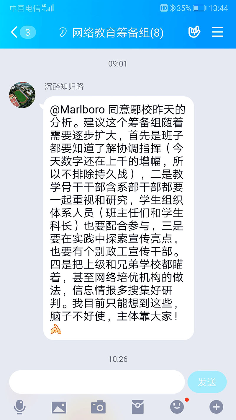 隔离成了我们普通百姓对这场战役的最大贡献,但作为17级的老师,我们不能让孩子的学习被隔离。2020年1月31号正月初七供校商业学校17级教师开始网上备课,2月3日为了方便授课群体,我们采用了网络在线学习及答疑的方式。