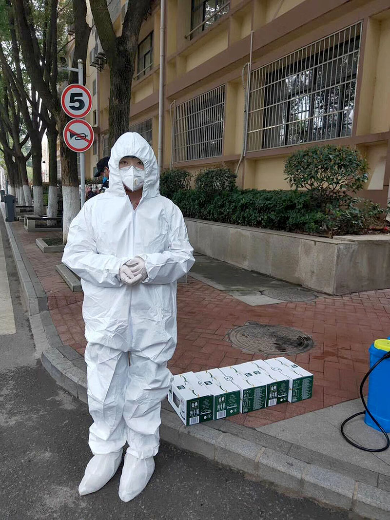 08级毕业生陈昕海虽离校多年,但他关心学校发展,关注校园动态,经过几年的奋斗,陈昕海自己创立广告公司,已成长为一名年轻企业家。当他关注到学校公众号推送的新闻中,曾经熟悉的老师身着各式简单防护在整理宿舍、改建隔离点时,已按捺不住对老师们的牵挂,立即四处联系防疫物资。随后又听说老师们要下沉社区,深入防疫一线,开展入户大排查,他又克服重重困难,最终向学校捐赠了100套防护服及2000个口罩。他说,能在特殊时期,为学校做点事,感觉自己始终与培育他的学校站在一起,是一件很光荣的事!