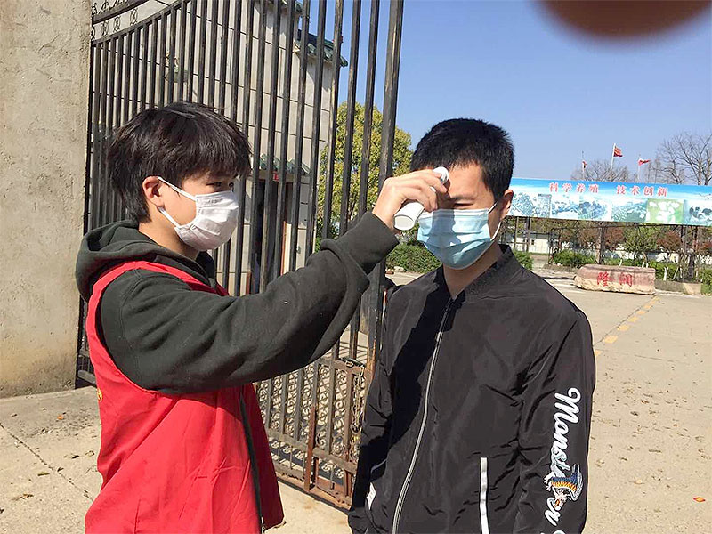 17级营销1班王旭东同学家住武汉,是武汉市东西湖柏泉农场西湖一大队辖区的一名志愿者。他每天为社区居民进行体温检测,给社区孤寡老人、残疾人居民送药、送菜,同时协助社区工作人员接听求助电话。