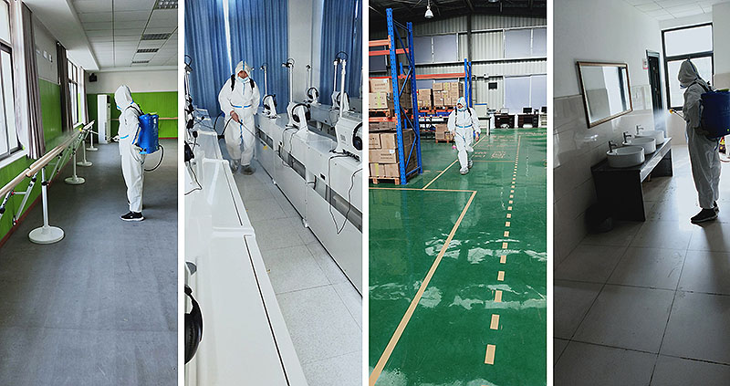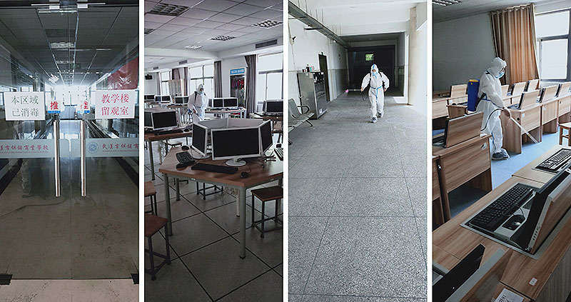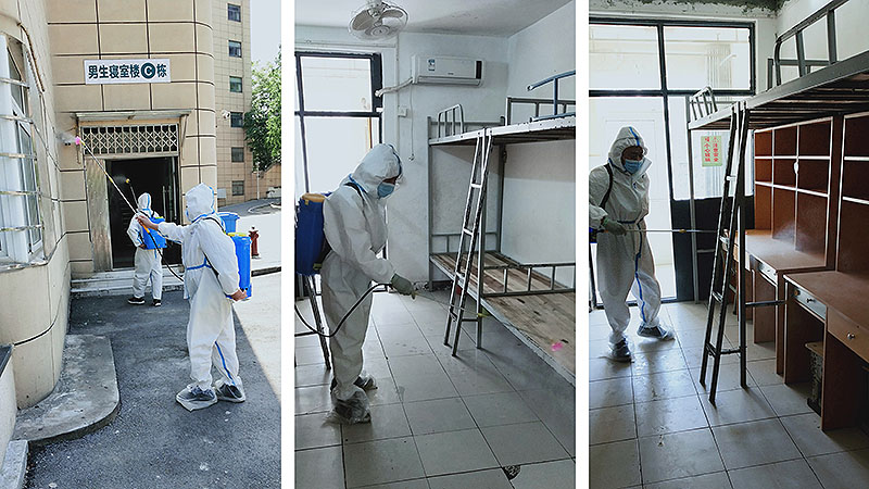 校园网消息(通讯员 范长城)根据市教育局统一部署和武汉市供销商业学校复学准备工作需要,在前期区疾控中心对校园终末消杀达到医院消毒标准基础上,2020年4月25日、26日防控办(保卫科)、总务处联合行动自加压力,精益求精,高标准严要求,再次逐一对教学楼、学生宿舍楼、实训楼、图书室、食堂、洗手间、楼梯等公共区域进行了地毯式、无遗漏、全方位消杀。