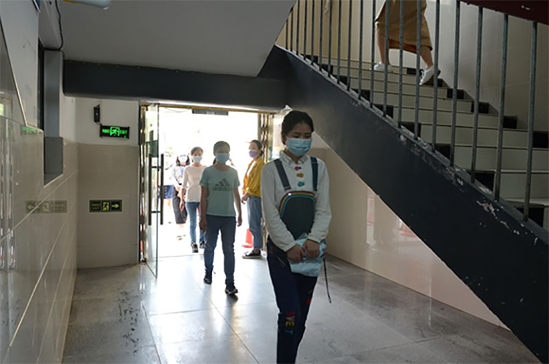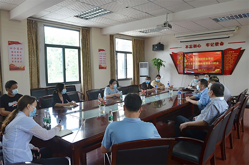 洪山区教育局赵群局长亲临学校现场指挥,学校组织全体系部主任、班主任及教师代表扮演老师和学生,开展了授课过程中应急处置演练和学生归寝过程中应急处置演练两个科目,进行了联动驻校医生以及狮子山街校内外衔接转办送诊至定点医院的实际运行。演练结束后,长动医院肖冬主任、区教育局职成教科熊稚玲科长给出了专业指导意见,熊科长宣布了区防控指挥部关于我校符合开学条件给予复学达标认定合格的通报。