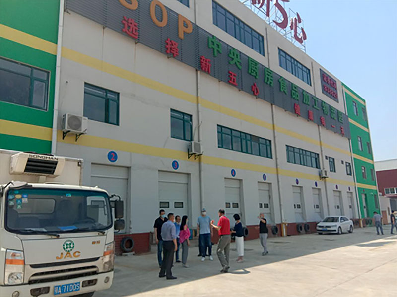 公司袁董事长介绍了中央厨房的相关情况:新五心中央厨房位于阳逻经济开发区余泊路35号,占地面积60多亩。一期厂房建筑面积2.2万㎡,现有生产管理和技术人员200余人,中央厨房备有6000㎡的大型冷库以及各类先进的进口加工设施设备如:生化实验室、微波复热隧道、电加热连续油炸机、丸类成型机、面点自动生产流水线、真空预冷机、真空包装机等一百多台、套设备,拥有快餐盒饭、面点、净菜等九大系列,具备日供餐50万人次的生产能力。