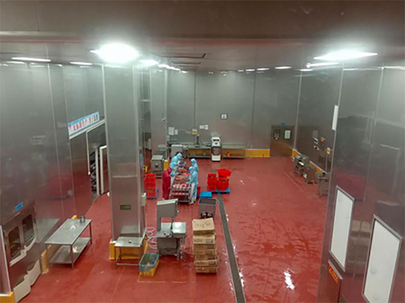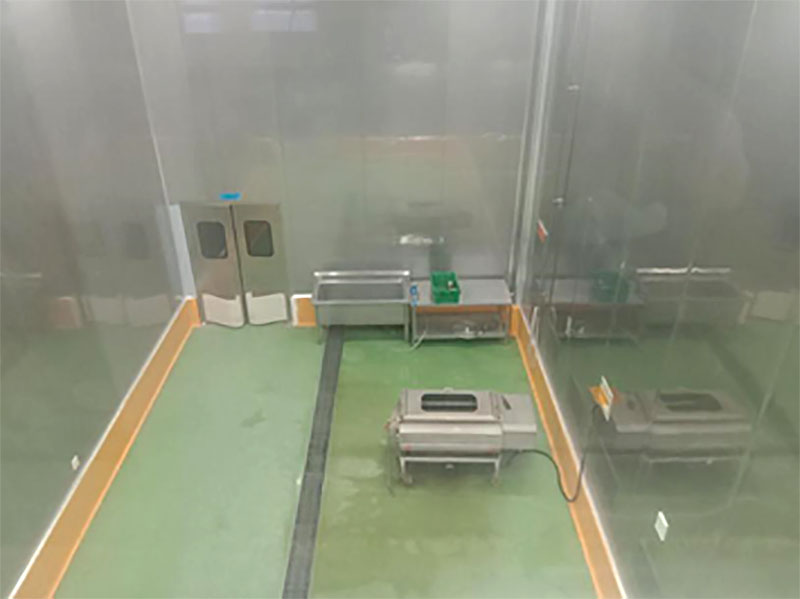处理生、熟食工作人员分通道进行更衣,风淋机吹灰,臭氧消毒