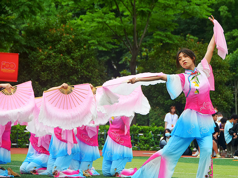 (通讯员 刘艳)2021年5月25日上午,武汉市供销商业学校举行校技能节暨全民终身学习活动开幕式。本次开幕式的舞蹈展演部分由我校舞蹈表演专业的学生承担。本次活动在校足球场上进行,全校师生一起观看了本次比赛。舞蹈表演专业18、19、20三个年级共6个班级共计200名左右同学参加了此次舞蹈竞赛,由曾争、陈晶老师指导,本次竞赛共有14个节目,主持人是彭敏老师。