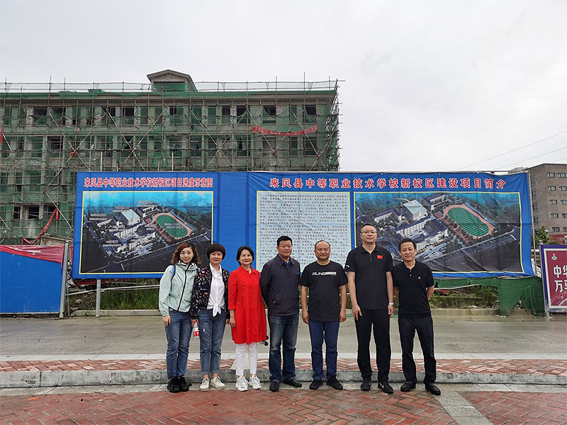 沈敏校长一行到达来凤职业学校新校区后,在来凤职校翁明章校长、刘融副校长等人陪同下深入到教学楼、实习实训楼、学生生活区、活动区等区域进行实地考察,翁校长详细介绍了学校新校区工程规划,沈校长一行人对来凤职校新校区发展感到欣喜并大加赞赏。